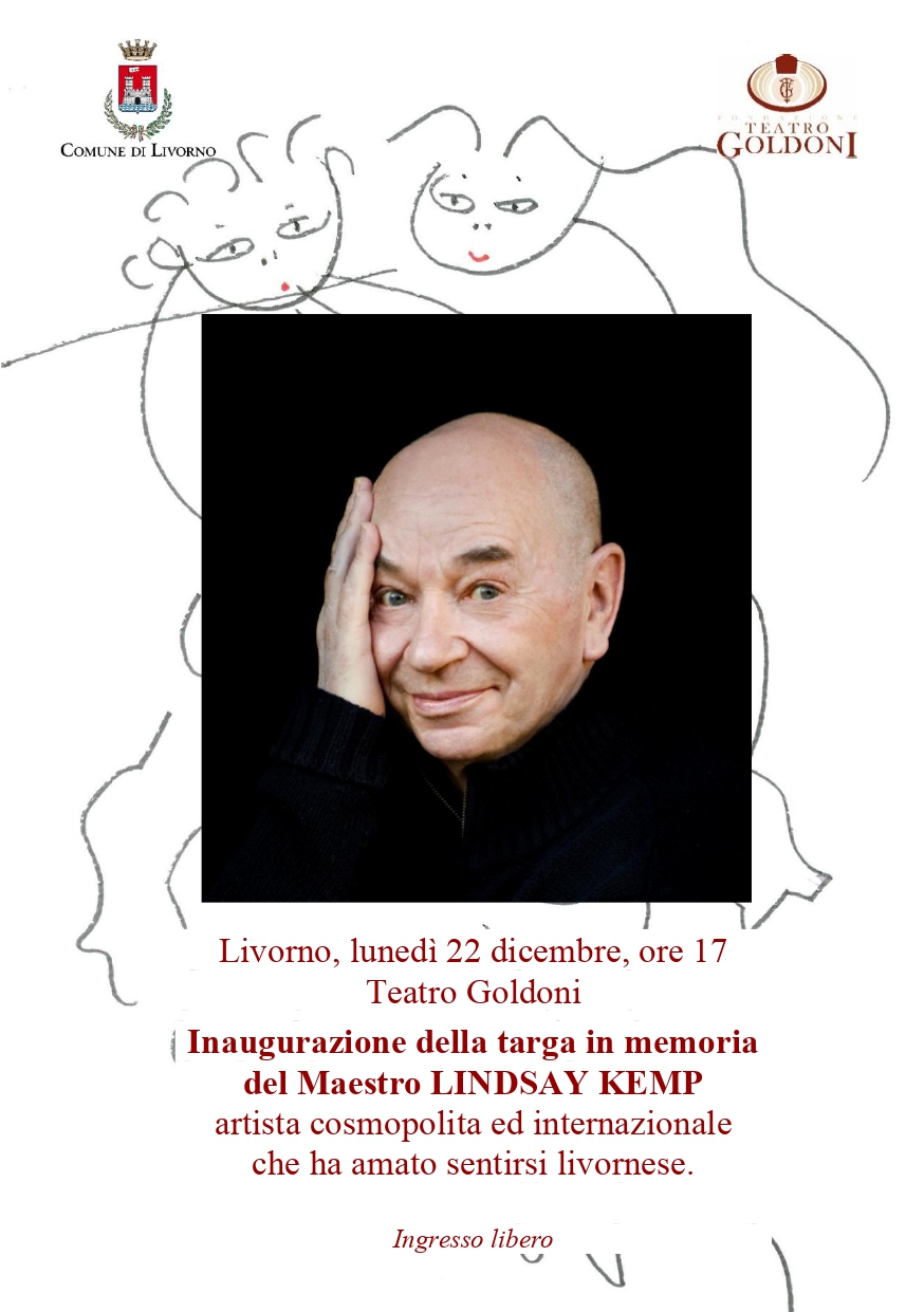 Lunedì 22 dicembre alle ore 17, nella Sala Mascagni del Teatro Goldoni, nel corso di una cerimonia aperta al pubblico, sarà scoperta una targa dedicata al grande artista LINDSAY KEMP