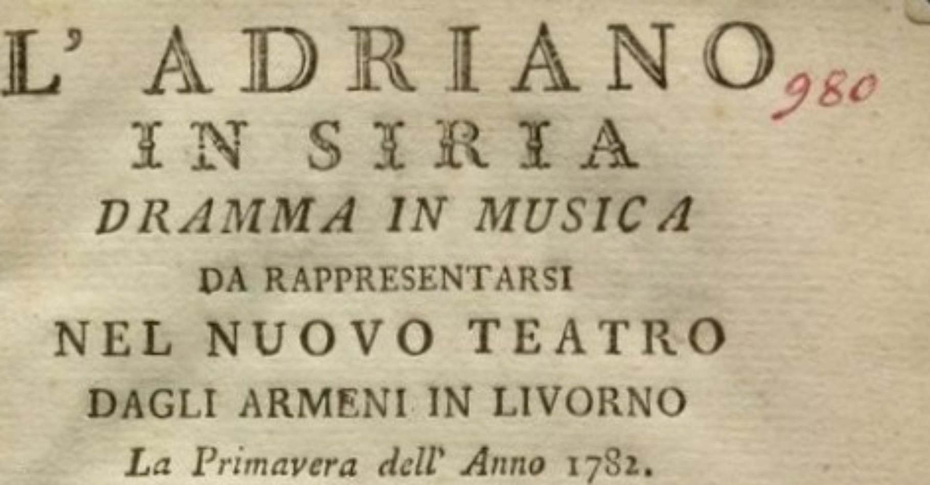 L’opera inizialmente prevista per il 30 e 31 maggio è stata rinviata alla prossima stagione teatrale nell’ambito della seconda edizione del Festival barocco i cui artefici principali saranno il M° Federico Maria Sardelli e l’Orchestra barocca Modo Antiquo. L’Adriano in Siria ebbe la sua prima rappresentazione assoluta proprio a Livorno il 1 aprile 1782 e la sua riproposta al Teatro Goldoni sarà una prima mondiale in epoca moderna.